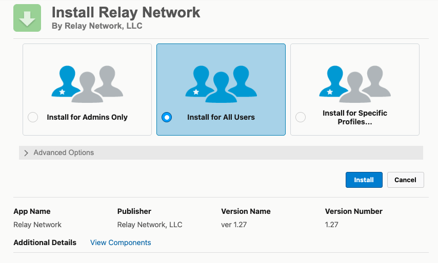 The Relay Network managed package can be installed directly from the Salesforce AppExchange.